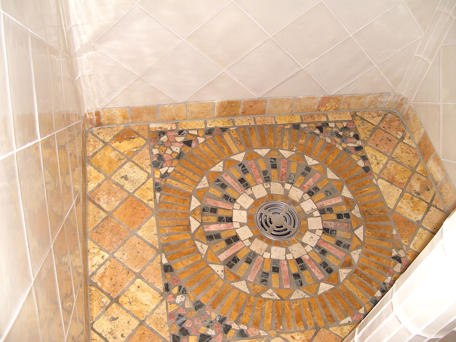 Naturstein Fliesen mit Mosaik im Badezimmer